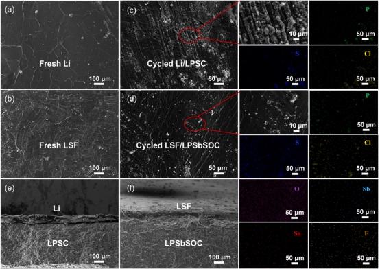 图6.全电池在循环前后的界面形貌和组成变化