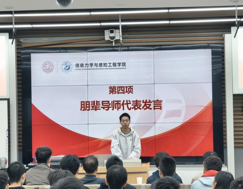 朋辈导师代表黄周权同学阐述了“主动对接、精准帮扶、师生联动、氛围营造、严于律己”五位一体的工作思路。具体措施包括建立学业难点清单与回访机制,提供个性化帮扶,组织经验交流活动,促进教学相长等。