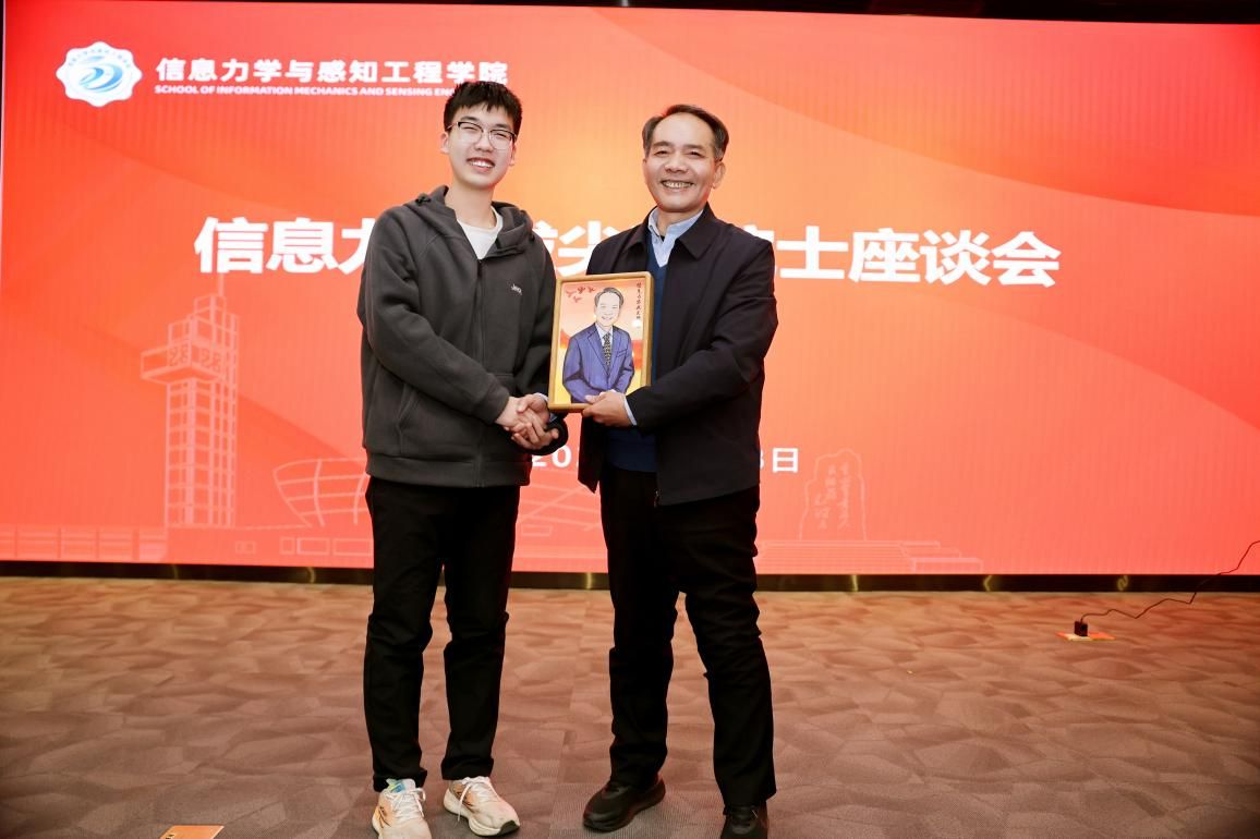 座谈会最后,员工代表杜喆向周院士赠送了由拔尖班同学绘制的院士肖像画,表达对科学家精神的崇高敬意。周院士勉励同学们珍惜学习机会,在打好基础的前提下勇于探索交叉学科领域,为建设科技强国贡献力量。